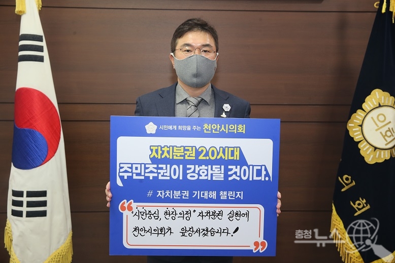 천안시의회 황천순 의장은 11일 자치분권 2.0시대 개막을 응원하기 위한 ‘자치분권 기대해’챌린지에 동참했다“고 전했다.