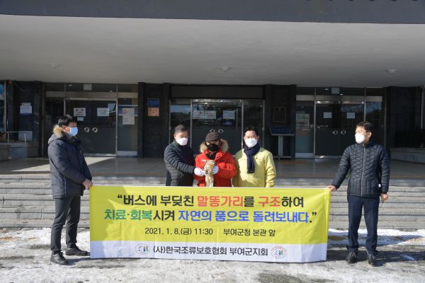 박소웅 회장은 “야생동물의 보호와 보존을 위해서는 주민들의 지대한 관심과 애정이 절실하다”며 “부상당한 천연기념물 보호종이나 야생조류를 발견하면 부여군청 환경과나 한국조류보호협회 부여군지회에 신속하게 신고해 주시기 부탁드린다”고 당부했다.