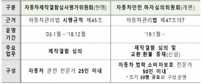 새롭게 출범하는 자동차안전·하자심의위원회는 기존 제작결함 심의 등의 업무에 자동차 교환·환불 중재 업무가 추가되고, 규모도 현행 25명에서 30명 수준으로 확대된다.