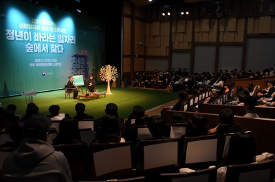 이날 김 청장은 "청년이 바라는 일자리, 숲에서 찾다"라는 주제로 직접 산림일자리를 소개하는 특별강연을 하고 청년들의 의견을 듣기 위한 토크콘서트를 진행했다.