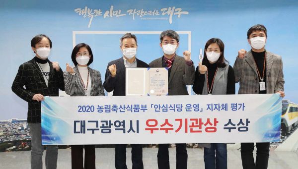 [충청뉴스큐] 대구시는 17개 시도를 대상으로 실시한 2020년 ‘안심식당 운영’ 농림축산식품부 평가에서 우수기관으로 선정되어 농림축산식품부 장관 표창을 수상했다.