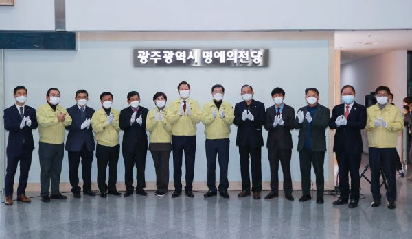 광주광역시는 14일 오전 시청 1층에서 이용섭 시장, 김용집 광주시의회 의장, 전년도 시민대상 수상자, 구제길 광주아너소사이어티회장, 윤택림 광주시 시정자문위원회 사무총장 등 관계자가 참석한 가운데 ‘광주시 명예의 전당’ 제막식을 개최했다.