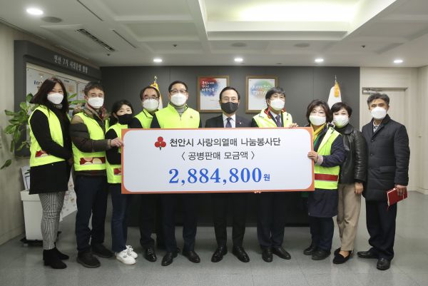 박상돈 천안시장은 “매년 나눔 활동을 실천하는 사랑의 열매 천안시 나눔봉사단에 감사드리며 앞으로도 민·관이 함께 노력해 나눔 문화 확산을 위한 사회분위기 조성에 더욱 노력해 주길 바란다”고 말했다.
