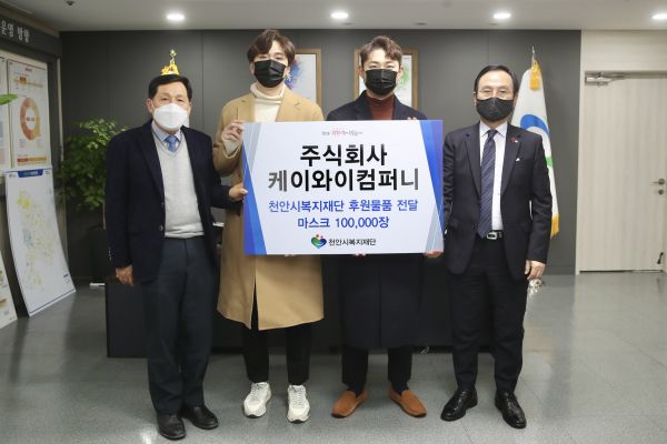 [충청뉴스큐] 주식회사 케이와이컴퍼니가 지난 18일 지역 내 어르신들과 청소년들을 위한 마스크 10만장을 천안시복지재단을 통해 후원했다.