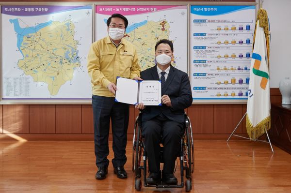 또 “지난해 아산시가 문화체육관광부 주관 장애인 생활밀착형 ‘반다비 국민체육센터 공모’에 선정돼 전국 최초로 장애인 복지 복합클러스터를 조성할 수 있는 기반을 마련했다”며 “올해 시 재정이 어려운 상황이나 추경에 부지 매입비를 예산에 반영될 수 있도록 노력을 하겠다”고 전했다.