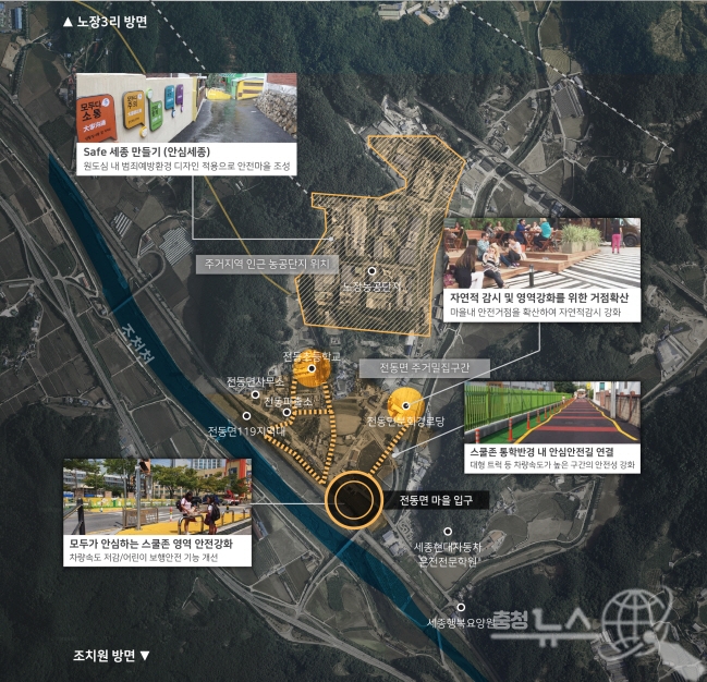 이에 시는 이 일대 교통사고 위험요인을 개선해 어린이와 전동면 주민 모두가 안전하게 보행하고 생활하는 통학로를 조성하고자 이번 사업을 추진한다.