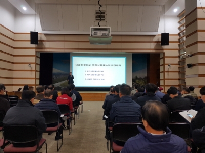 [충청뉴스큐] 경상북도는 23일 포항시청 대회의실에서 연면적 5천㎡ 이상 민간다중이용시설 안전관리자, 시군 관계 공무원 150여명을 대상으로 ‘재난 대응역량 강화 교육’을 실시했다.