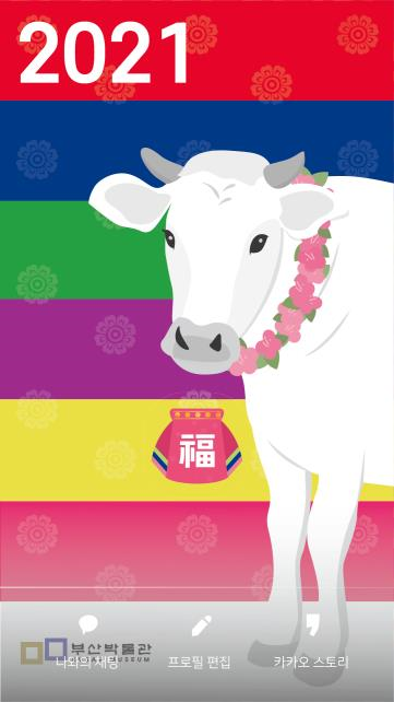 입춘 맞이 이미지는 부산박물관이 소장하고 있는 ‘조희룡 필 백매도’를, 설맞이 이미지는 신축년 새해 복을 전하는 흰 소를 활용해 제작됐다.