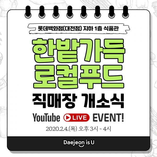 이날 행사 중에는 ‘대전블루스’ 유튜브 방송시 댓글을 남겨주신 분 들 중 25명을 선정, 롯데백화점이 제공하는 로컬푸드 교환권을 전달할 예정이다.