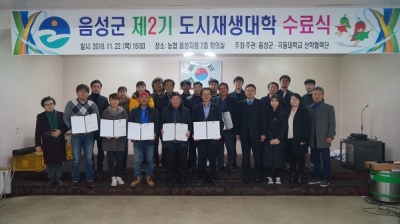 [충청뉴스큐] 음성군은 지난 22일 농협 음성지점 회의실에서 수강생 등 20여 명이 참석한 가운데 ‘제2기 도시재생대학 수료식’을 가졌다.