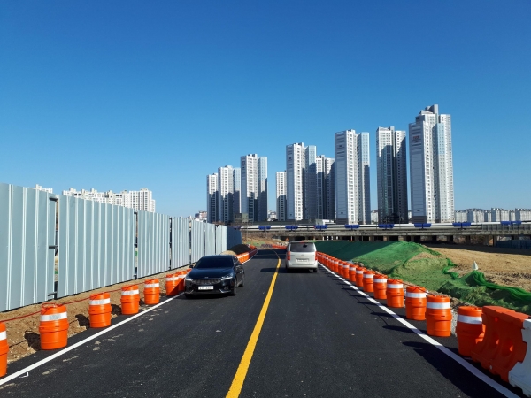 호반3차아파트 후문과 희망로 교차로를 연결하는 임시도로는 1억여 원의 사업비를 투입해 연장 245m, 폭원 8.0m의 도로로 조성됐다.
