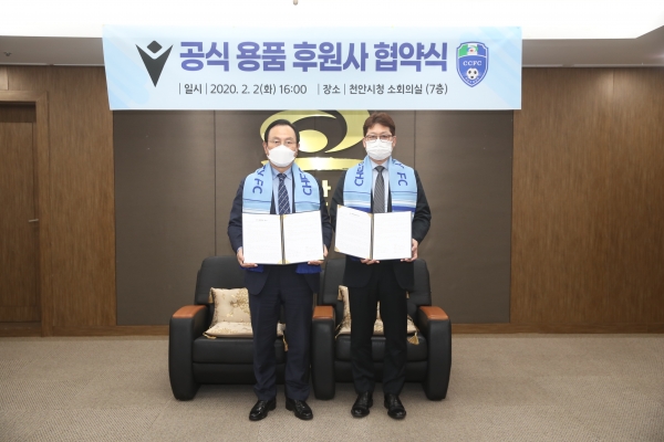 [충청뉴스큐] 천안시축구단은 지난 2일 천안시청에서 이탈리아 스포츠 브랜드 마크론과 공식 용품 후원사 협약을 체결했다고 밝혔다.