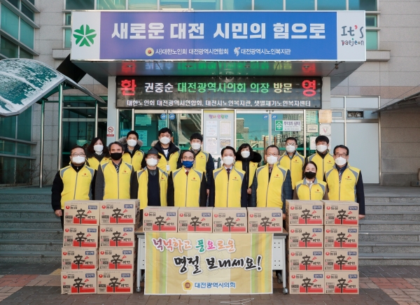 [충청뉴스큐] 대전광역시의회 권중순 의장은 설 명절을 맞아 6일 중구 대흥동에 위치한 대전광역시노인복지관 및 대한노인회대전광역시연합회를 방문해 어르신들의 건강상태 등을 살피고 생필품을 전달했다.