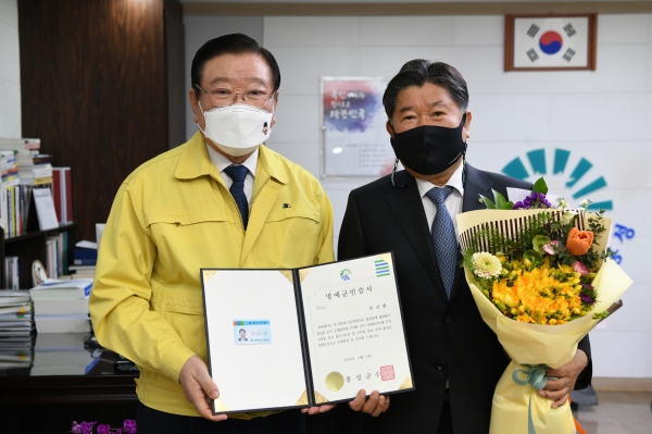 [충청뉴스큐] 홍성군은 군정발전에 힘써 온 최건환 경주리조트 대표이사에게 지난 3일 명예군민증을 전달했다.