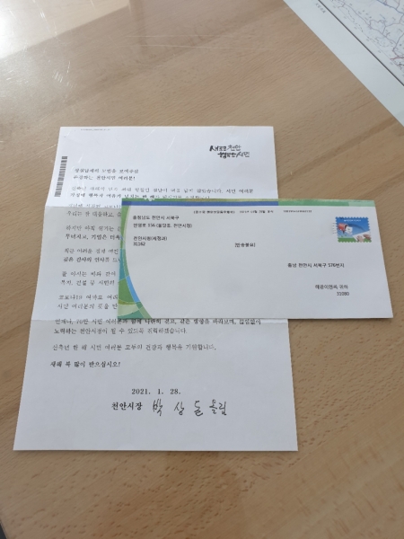 [충청뉴스큐] 천안시가 지방세 성실납세자 2만명에게 서한문을 보내 감사의 뜻을 전했다.