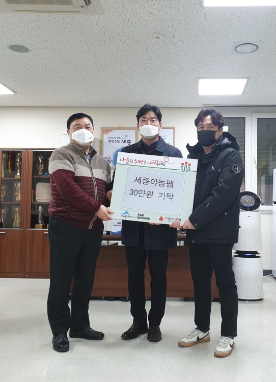 [충청뉴스큐] 세종특별자치시 한솔동이 최근 세종시 인기동호회인 ‘세종야농팸’가 한솔동주민센터를 방문해 이웃돕기 성금 30만원을 기탁했다고 10일 밝혔다.