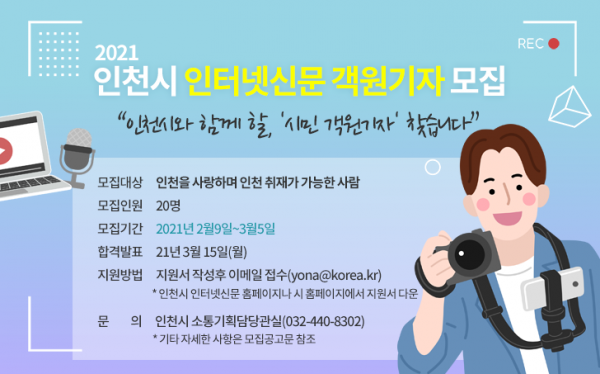 [충청뉴스큐] 인천과역시는 공식 인터넷신문 ‘i-View’의 시민객원기자를 모집한다고 밝혔다.