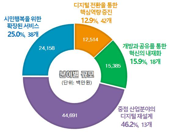 한편 신규사업은 포스트 코로나 시대의 사회변화에 대응해 비대면 서비스와 블록체인·빅데이터·인공지능 등 4차 산업기술에 디지털 역량을 집중했고 사업비는 234억원으로 전체 사업비의 24.2%를 차지한다.