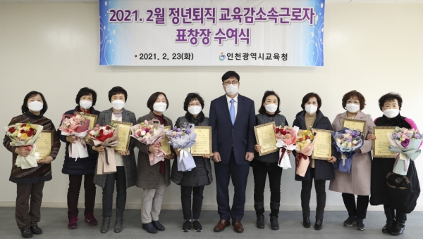 [충청뉴스큐] 인천광역시교육청은 23일 2021년 2월 말 정년퇴직하는 교육감 소속 근로자를 대상으로 유공 표창을 수여했다.