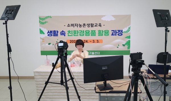 [충청뉴스큐] 계룡시농업기술센터는 녹색생활 실천을 위한 우리 농산물을 이용한 ‘생활 속 친환경용품 활용’ 비대면 온라인 교육을 진행 중이라고 전했다.