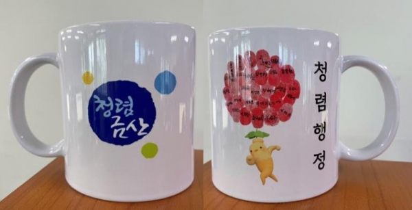 [충청뉴스큐] 금산군 자치행정과는 25일 청렴행정을 생활화하고 일회용품 사용을 줄이기 위해청렴 머그컵을 제작했다.