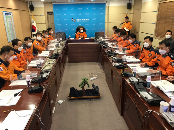 김충식 강원소방본부장 주관 하 에 18개 관서와 소방본부 담당급이상 간부가 참석해 영상으로 전략적 대응방안을 모색했다, 회의는 금년도 건조한 날씨 속에 발생한 양양, 정선, 삼척 화재특성을 살펴 앞으로 대응방향을 논의했다.
