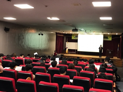 1부에서는 진호정 코스맥스바이오 전무이사와 기업인과의 만남을 진행하고 예비근로자가 갖추어야 할 마음가짐 및 기본 태도, 제약관련 회사 취업에 관한 질의 등의 시간을 가졌으며,2부에서는 노무법인 유앤 박현국 공인노무사의 친절한 설명과 구체적인 사례 제시를 통해 ‘근로계약서 작성 및 근로시간, 최저임금 및 퇴직금 등’을 주제로 예비 근로자들에게 노동법 강의를 펼쳤다.