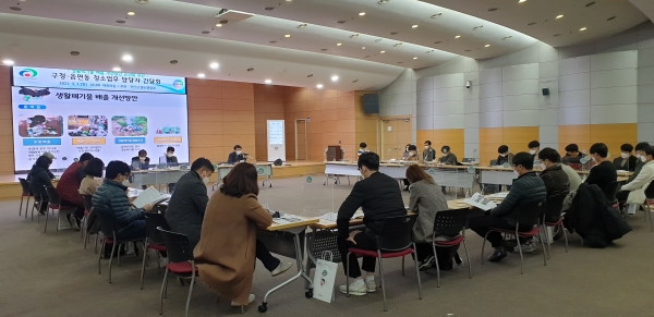 시는 지난 2일 시청 대회의실에서 양 구청 및 읍·면·동 청소업무 담당자가 모인 가운데 생활폐기물 감량 및 배출개선 방안을 논의하기 위한 간담회를 개최했다고 밝혔다.