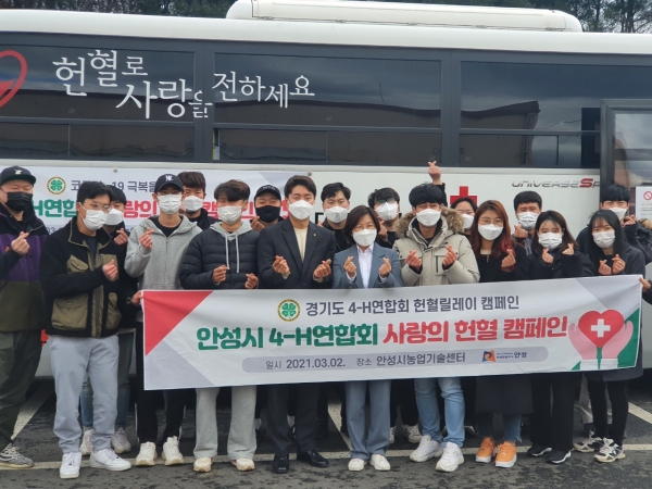 안성시 4-H연합회와 농업기술센터가 주최한 이번 헌혈 릴레이 행사는 코로나19로 인해 헌혈자가 급감함에 따라 혈액 난 극복에 도움을 주고자 마련됐으며 경기도 내 타 시군 4-H연합회를 지목해 헌혈 릴레이에 동참시킬 계획이라고 전했다.