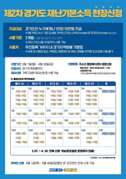 [충청뉴스큐] 평택시는 시민 모두가 ‘제2차 경기도 재난기본소득’을 빠짐없이 받을 수 있도록 읍·면·동행정복지센터에서 현장접수를 진행한다.
