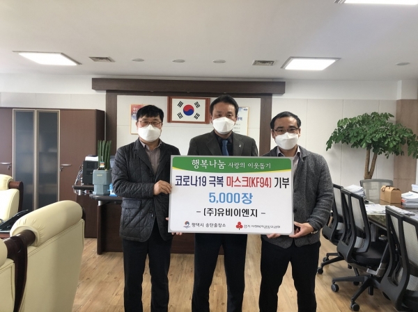 [충청뉴스큐] 평택시 서탄면에 위치한 ㈜유비이엔지는 지난 3일 송탄출장소를 방문해 코로나19 극복을 위한 생활이 어려운 이웃들 지원에 힘써 달라며 마스크 5,000개를 기탁했다.