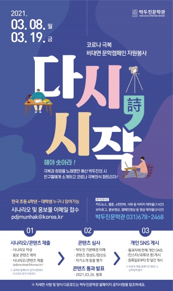 ‘다시, 시작’은 혜산 박두진 시인의 생애와 문학작품을 바탕으로 한 홍보 콘텐츠와 시나리오를 직접 개발하는 비대면 자원봉사프로그램이다.