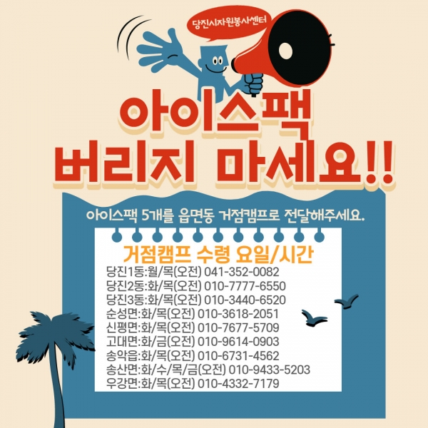 당진시자원봉사센터는 코로나19가 확산되던 작년부터 코로나19에 대응하고자 ‘안심마을 만들기’ 사업을 진행해 왔으며 이번 달부터 8월까지 진행되는 ‘아이스 팩 재사용’ 사업 또한 이 사업의 일환이다.