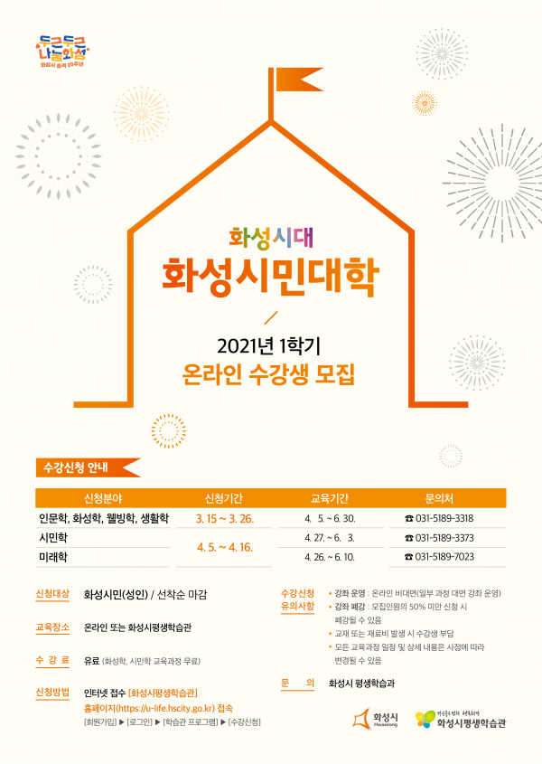 [충청뉴스큐] 화성시는 2021년 1학기 화성시민대학 온라인 수강생을 모집한다고 8일 밝혔다.