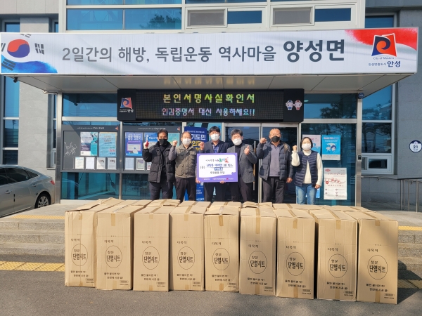 권순광 양성면장은 “모두가 어려움을 겪고 있는 상황에 이웃사랑을 실천해주셔서 감사하다”며 “덕분에 우리 지역사회에도 따뜻하고 의미 있는 기부문화가 더욱 활발해질 것으로 기대한다”고 말했다.