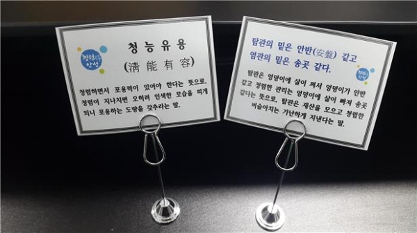 정보통신과 직원들은 자체 청렴 시책을 통해 매월 청렴 일화, 고사성어, 명언, 속담 등 다양한 형태의 역사 속 청렴을 직접 찾아보고 공유함으로써 자연스럽게 청렴 정신 및 몸가짐을 배우고 실천할 좋은 기회를 갖게 된다.