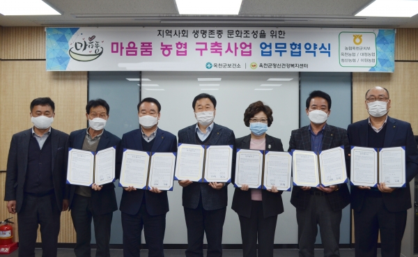 [충청뉴스큐] 옥천군은 농협중앙회 옥천군지부와 자살예방 및 생명존중 문화조성을 위한‘마음품 농협 구축사업’을 위한 업무 협약식을 개최했다.