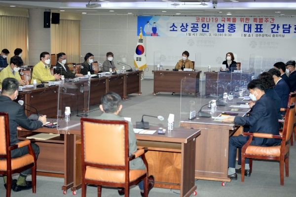 [충청뉴스큐] 광주광역시는 10일 시청 중회의실에서 지역 소상공인 업종 대표들과 간담회를 갖고 코로나19 장기화로 인해 현장에서 겪고 있는 애로와 건의사항을 가감 없이 듣고 대책을 모색했다.