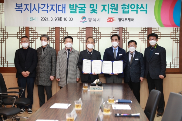 [충청뉴스큐] 평택시와 평택우체국은 지난 9일 시청 대외협력실에서 복지사각지대 발굴 및 지원을 위한 업무협약을 체결하고 3월부터 ‘평택 두드림엽서-똑똑’을 발송해 복지사각지대 발굴을 위한 협력을 해 나가기로 했다.