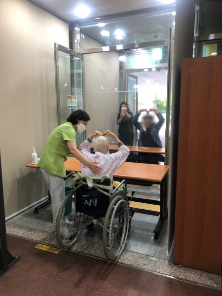 [충청뉴스큐] 코로나19 확산으로 상당수의 요양병원에서 집단감염 우려로 자체적으로 면회를 금지 또는 제한해 왔으나, 중앙사고수습본부에서 면회 지침이 개정됨에 따라 환자와 가족의 불만을 해소하기 위해 지난 9일부터 본격적으로 비접촉 면회를 시행했다.