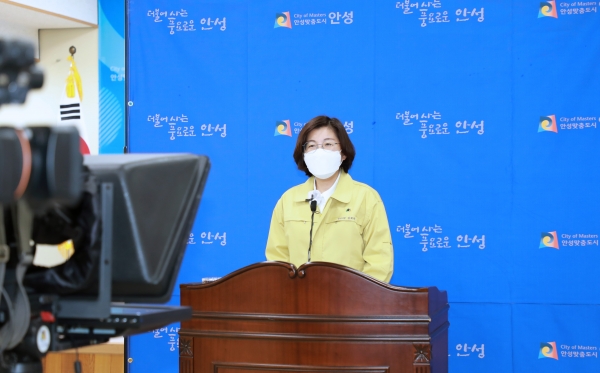 [충청뉴스큐] 김보라 안성시장은 11일 안성시청 4층 대회의실에서 최근 안성시 축산물공판장 코로나19 집단감염 발생과 관련해 비대면 긴급 브리핑을 갖고 발생현황 및 대응상황, 향후 대처계획을 발표했다.
