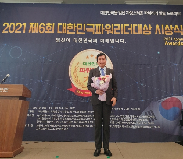 [충청뉴스큐] 경기도의회 도시환경위원회 장동일 위원장이 11일 오후 한국프레스센터에서 열린 2021 대한민국 파워리더 대상을 수상했다.
