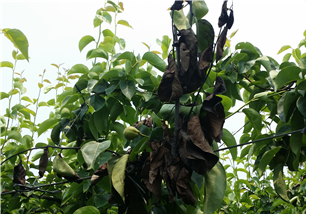 ‘과수화상병’은 사과, 배 등 장미과 180여 종에서 발병하며 세균에 의해 사과나 배나무의 잎, 줄기, 꽃, 열매 등이 불에 타 화상을 입은 듯한 증세를 보이다가 말라죽는 병을 말한다.