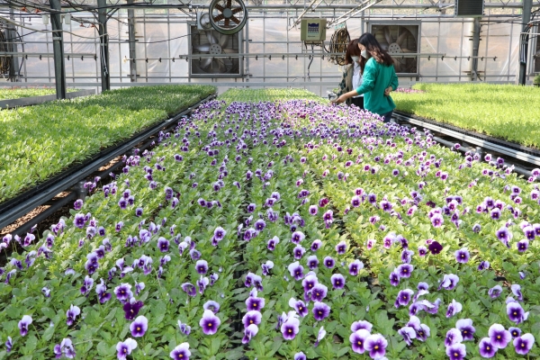 농업기술센터는 1998년부터 1,200㎡ 규모의 유리온실 시설을 갖추고 원예치료정원, 기후온난화대비 아열대 작물 시험재배와 함께 500㎡의 육묘시설을 활용해 해마다 꽃묘를 생산하고 있다.
