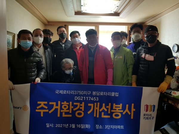 봉담로타리클럽이 집안에서 2톤 분량의 생활쓰레기를 수거하고 화장실 리모델링을 지원했다.