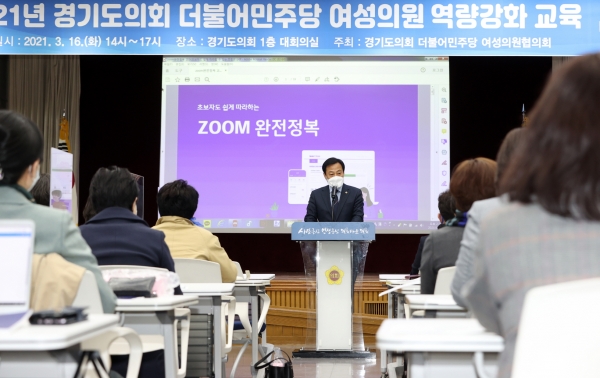 한편 경기도의회 더불어민주당 여성의원협의회가 주최한 이날 교육은 김미리 회장과 최경자 수석부회장, 고은정·김미숙 부회장 등 여성 도의원과 경기도 31개 시·군 의회 여성의원 등 총 70여명이 참석해 방역수칙을 준수한 가운데 진행됐다.