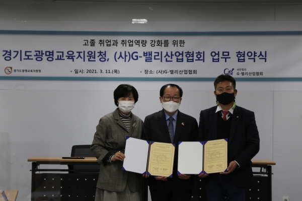 경기도광명교육지원청과 사단법인 G-밸리산업협회는 지난 11일 ‘고졸취업지원 시스템 구축’ 업무 협약식을 맺었다.