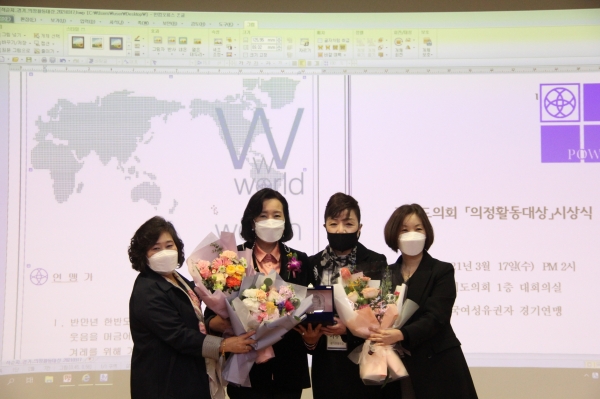 한국여성유권자경기연맹은 1988년 창립해 여성의 민주시민의식 함양과 양성평등의식을 지닌 차세대 지도자 양성의 3대 목표로 활동하고 있는 정치적 중립 단체로 이번 시상에서 민생 향상 및 도민과의 적극적인 소통과 국가발전을 위해 모범적인 의정활동을 수행한 의원을 수상자로 선정했다.