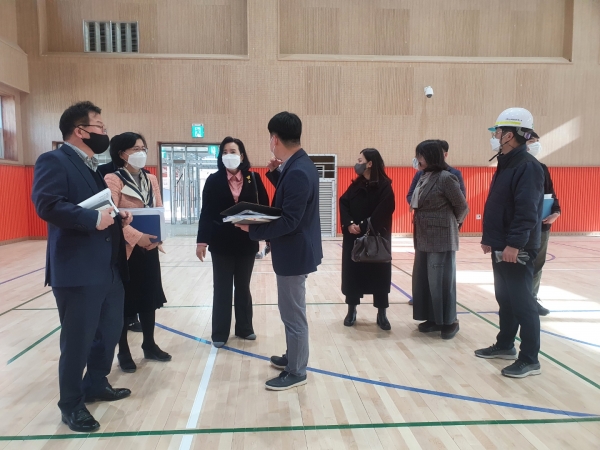 정윤경 위원장은 “심각한 미세먼지 등과 같은 외부 환경의 제한 없이 학생들이 쾌적한 환경에서 다양한 활동을 할 수 있게 되어 기쁘다”고 말하며 “학교 시설은 학생들의 안전과 직결되는 것으로 학생들의 안전을 최우선으로 고려해 세심하게 공사를 마무리해 줄 것”을 당부했다.