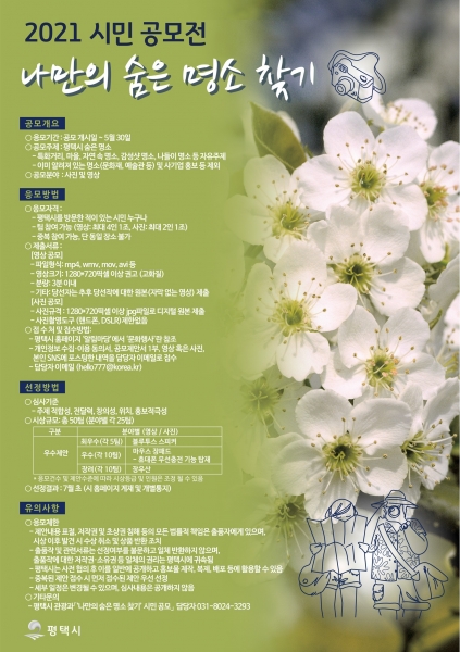 [충청뉴스큐] 평택시가 오는 5월30일까지 ‘나만의 숨은 명소 찾기’ 시민 공모전을 개최하고 있다고 밝혔다.